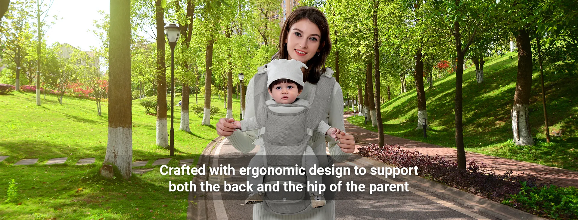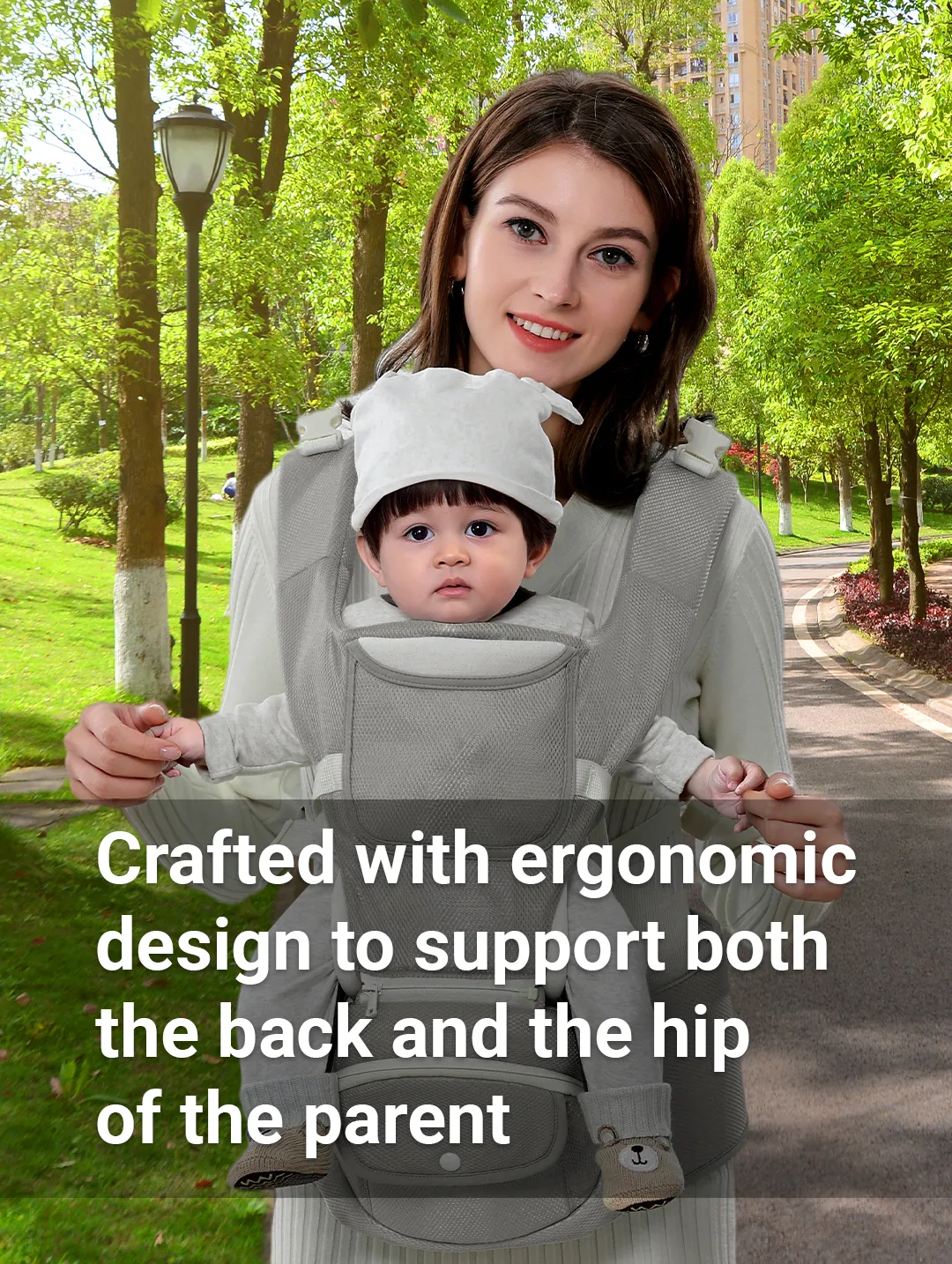 • The carrier can be detached from the seat with a simple zip and used as hip support for you as your little one grows