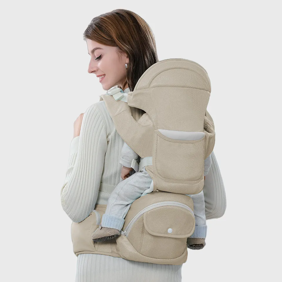 • The carrier can be detached from the seat with a simple zip and used as hip support for you as your little one grows