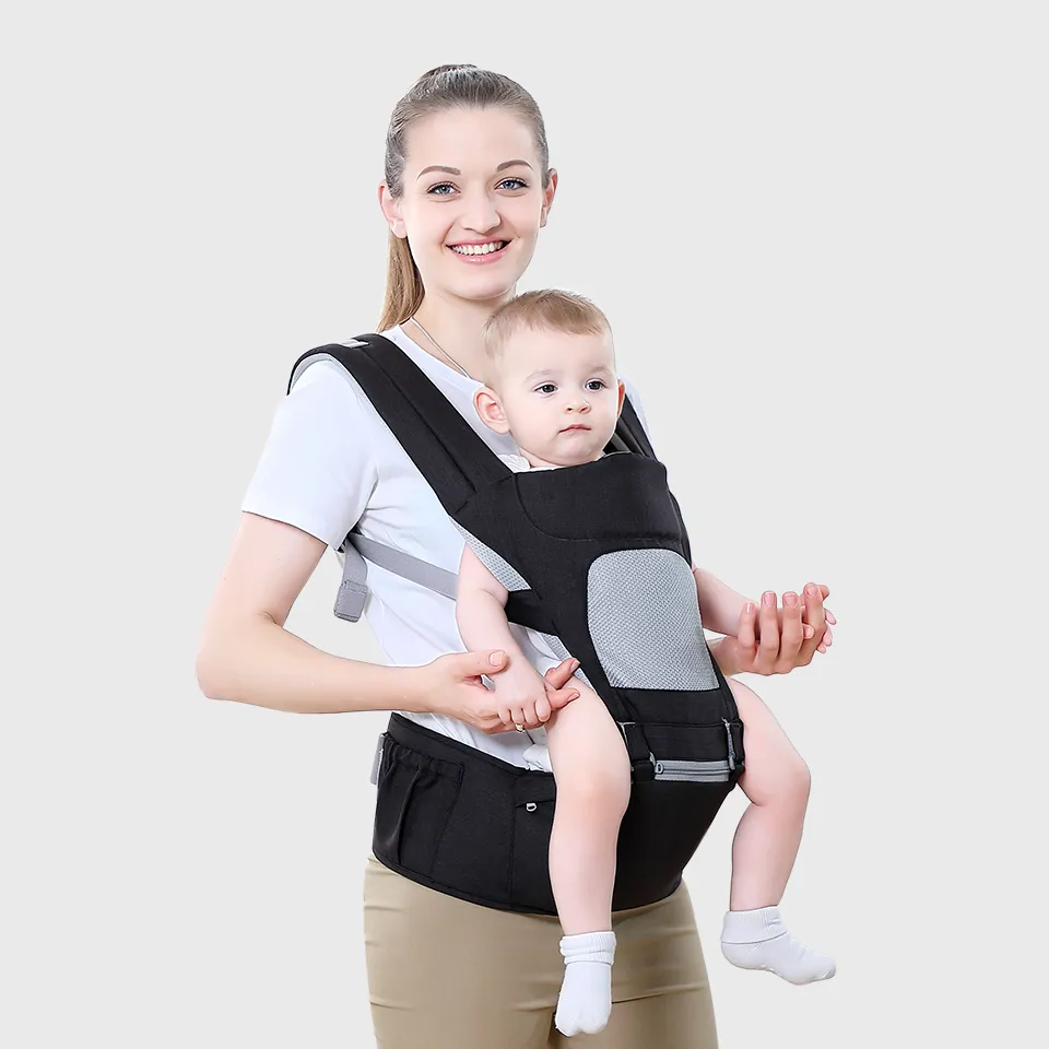 • The carrier can be detached from the seat with a simple zip and used as hip support for you as your little one grows