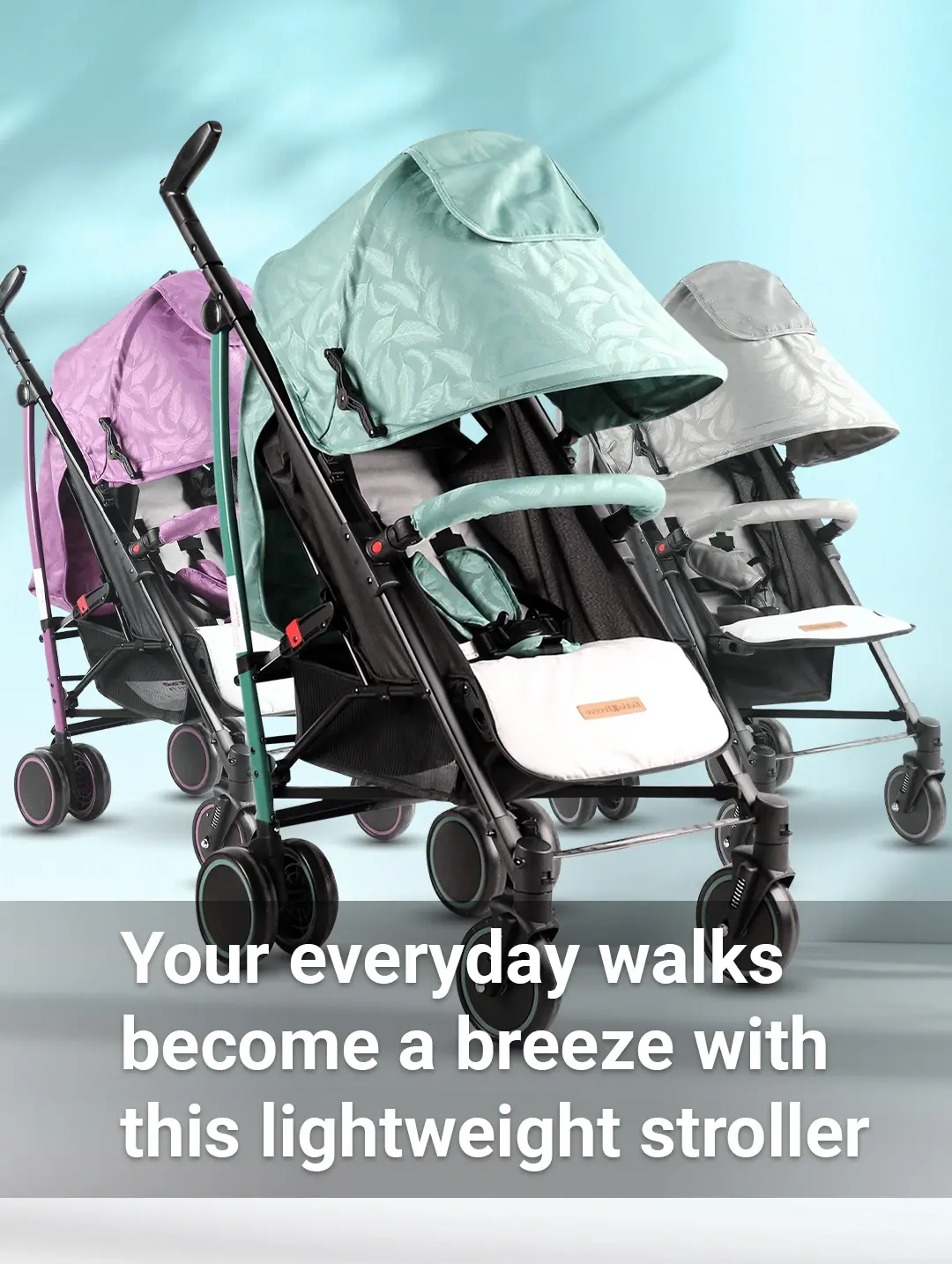 Kiddo Breeze is a lightweight travel stroller suitable for babies from 6 months up to 15 kg. Convenient and compact, for every season of the year.