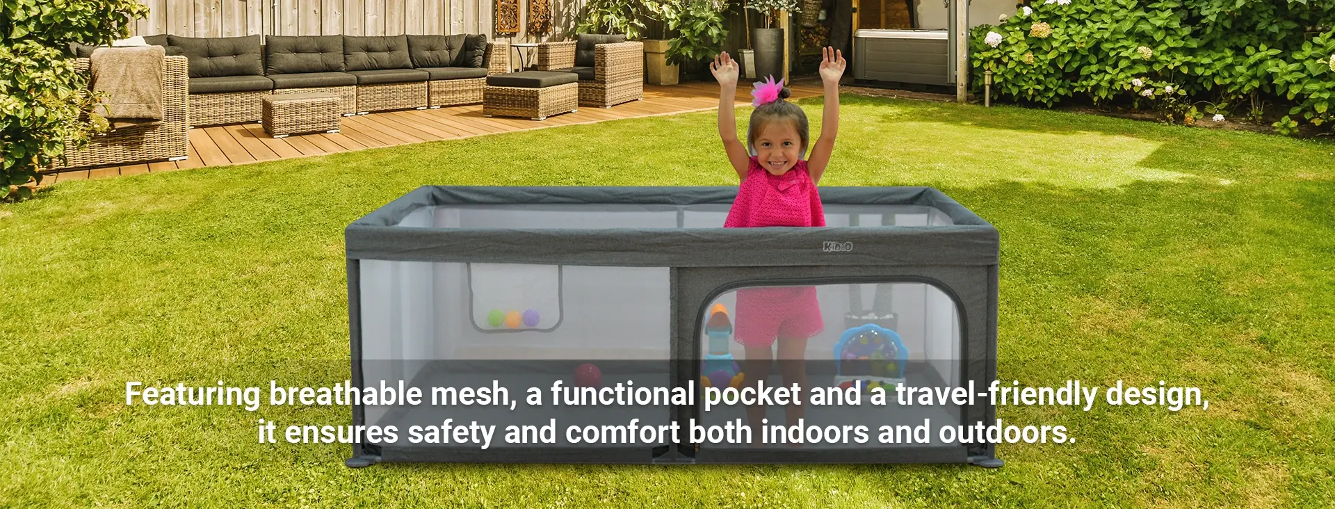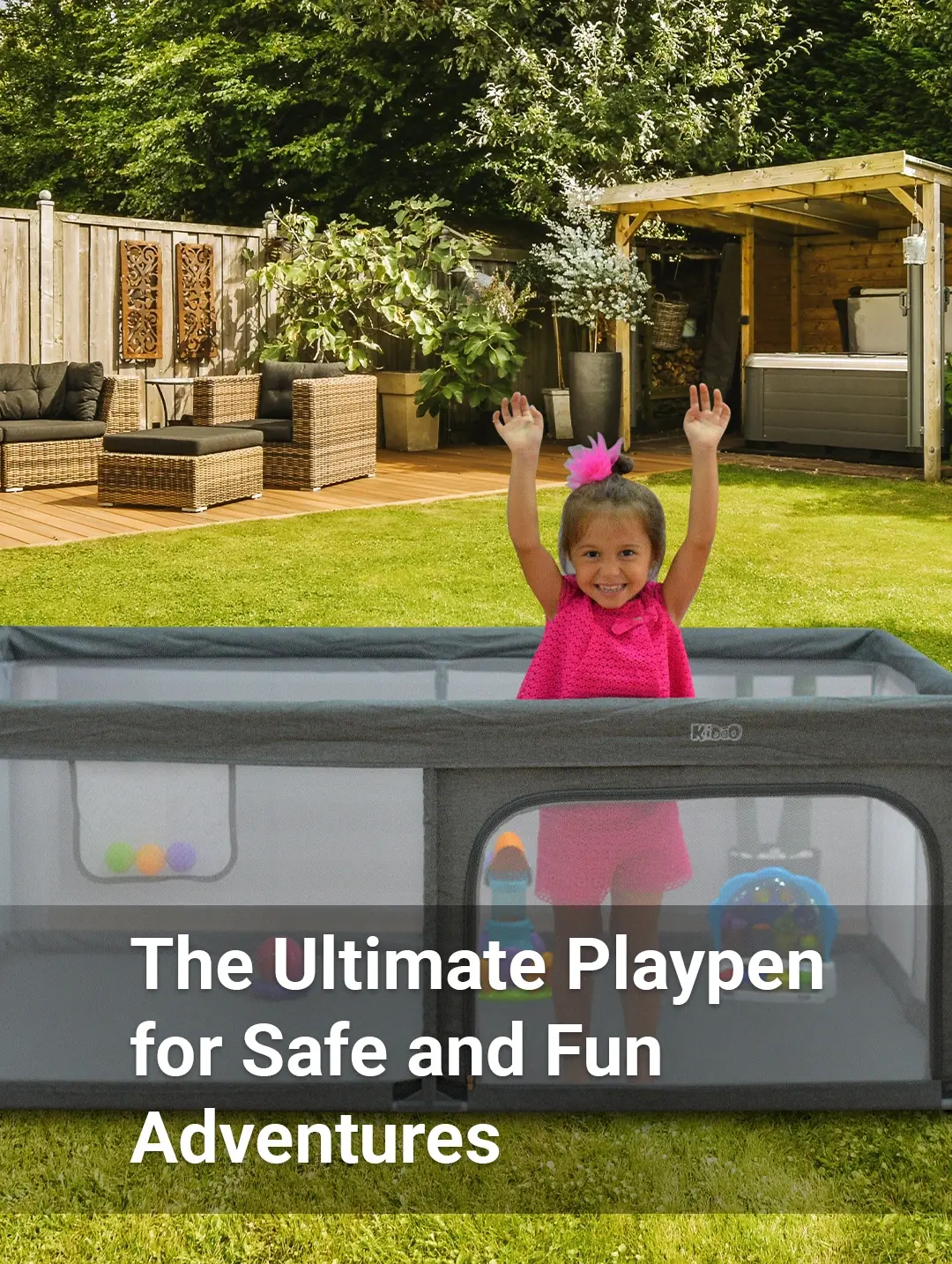 Α Playground that provides a secure and spacious play area for children from infancy to 6 years, with a lightweight frame, anti-slip feet, and easy setup.